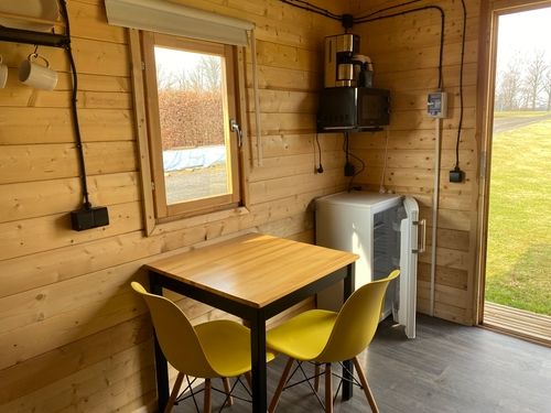 De trekkershut ligt rustig op de camping, dicht bij het sanitairgebouw met douches en toiletten. Door de ligging midden in de natuur is dit een fijne plek voor stellen die eenvoud en rust waarderen.